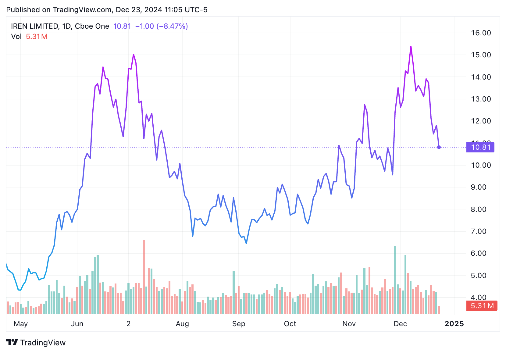 Nevertheless, the Iren share price has recovered since the release of the short report on July 11,[3] setting an all-time high of $15.92 on December 6. The stock set a 52-week low of $3.56 back on February 5. It has gained 92.03% in the year to date through December 17 and 128.45% in the past 12 months.